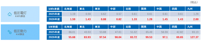 2026 年度の低圧プランの電気料金メニューの容量拠出金相当単価を以下のとおりご案内いたします。